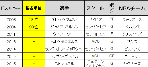 そして2017-2018シーズンの、A10出身現役NBA選手*ベンブリー除く↓